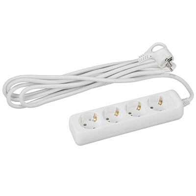 Удлинитель четырехместный 3 м "Эра" U-4e-3m-3x1 (16 А, 250 В, ПВС 3 х 1 кв.мм) с заземлением, белый