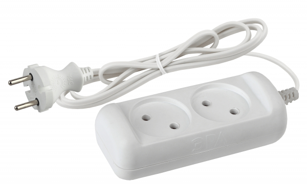 Удлинитель двухместный 1,5 м "Эра" U-2s-1,5m-2х1 (10 А, 250 В, ПВС 2 х 1 кв.мм) с выключателем, белый