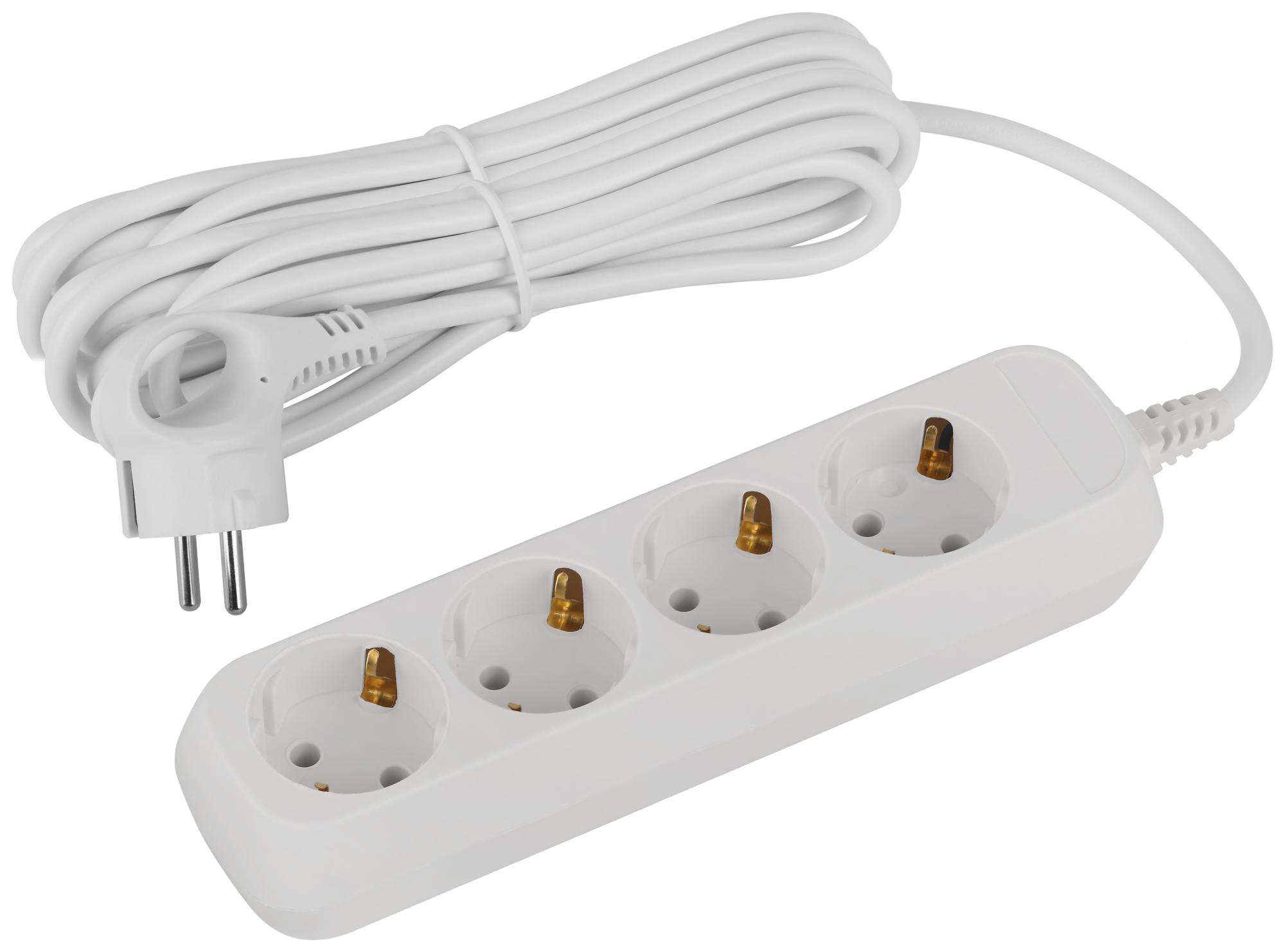 Удлинитель электрический Эра GREENLINE UDL-16-450-E с заземлением, на 4 розетки, провод 5м ПВС 3x1мм2. Рассчитан на максимальную мощность 16А/3500 Вт. Удлинитель станет Вашим надежным помощником, если любимые электроприборы находятся далеко от розеток. Корпус выполнен из ударопрочного и негорючего пластика (полипропилен). Вилка обеспечена кольцом для удобного извлечения ее из розетки. Модель удлинителя на 16А позволяет подключить бытовые приборы общей нагрузкой до 3500Вт.