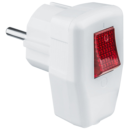 Вилка электрическая угловая Navigator NCA-PL05-16A-ESC-WH (16 А, пластик, IP20) с заземлением, с выключателем, белый