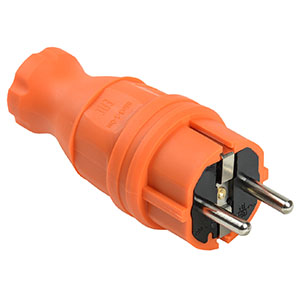 Вилка прямая ВБп3-1-0м IEK "Омега" (16 А, IP44, каучук) с заземлением, оранжевый