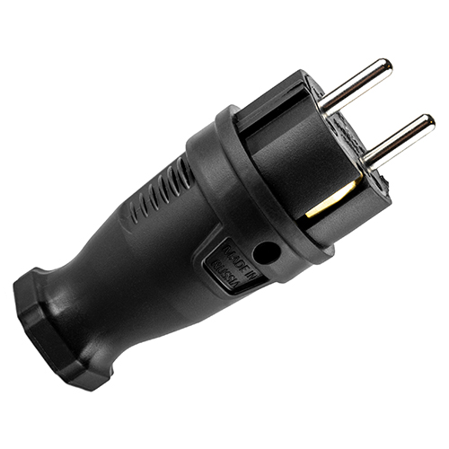 Вилка прямая PlexUp EPP21-16-02-44 (16 А, каучук, IP44) с заземлением, черный