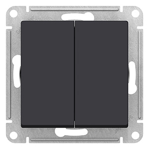 Переключатель двухклавишный Schneider Electric ATN001065 AtlasDesign (10 АХ) скрытой установки, карбон