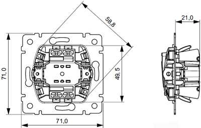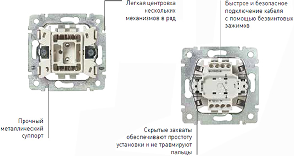 - Механизмы всех выключателей и кнопок оснащены креплением на винтах и на захватах.