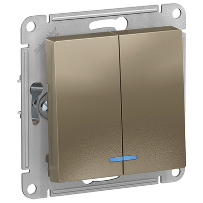 Выключатель двухклавишный Schneider Electric ATN000553 AtlasDesign (10 АХ) скрытой установки, с подсветкой, шампань