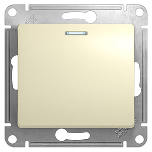 Выключатель одноклавишный Schneider Electric GSL000213 Glossa (10 А, IP20) скрытой установки, с подсветкой, бежевый