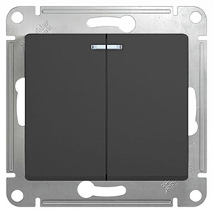 Выключатель двухклавишный с подсветкой Schneider Electric GSL000753 Glossa (10 А, механизм), антрацит