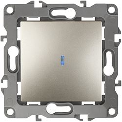 Выключатель одноклавишный 12-1102-04 "Эра 12" (10 АХ, 250 В, IP20), с подсветкой, шампань