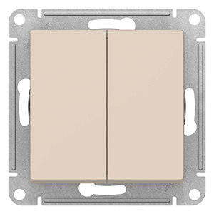 Выключатель двухклавишный Schneider Electric ATN000251 AtlasDesign (10 АХ) скрытой установки, бежевый