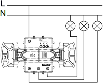 * АХ означает способность выключателя работать с реактивной нагрузкой номинальным током 10 А, то есть с люминесцентными светильниками.