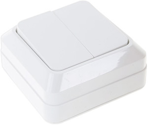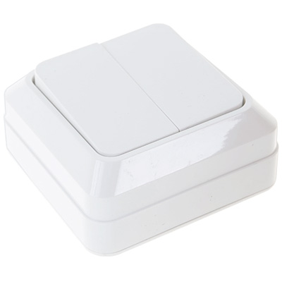 Выключатель двухклавишный IN HOME 7023 Bolleto (10 А, IP20) открытой установки, белый