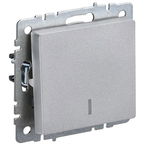 Выключатель одноклавишный проходной IEK ВС10-1-7-БрА Brite (10 А, IP20) скрытой установки, с подсветкой, алюминий