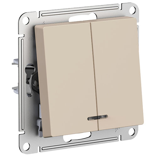 Выключатель двухклавишный Systeme Electric ATN001253 AtlasDesign (10 АХ) скрытой установки, с подсветкой, песочный