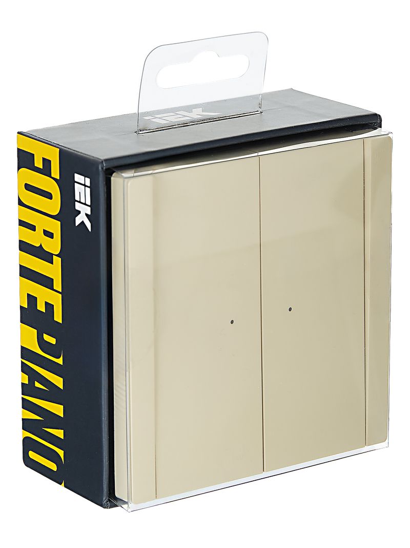 Выключатель двухклавишный проходной IEK FP408 Forte&Piano (10 А, IP20) скрытой установки, с индикацией, ваниль