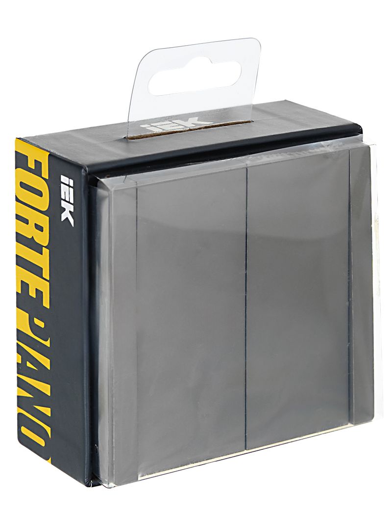 Выключатель двухклавишный проходной IEK FP508 Forte&Piano (10 А, IP20) скрытой установки, с индикацией, сталь