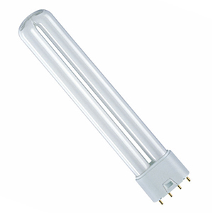 Короткая и компактная лампа Osram серии Dulux L Lumilux со штыревым одиночным четырехконтактным цоколем 2G11, с двухоборотными колбами работает от аккумуляторной батареи, солнечной энергии и сети переменного тока с подходящим ПРА.