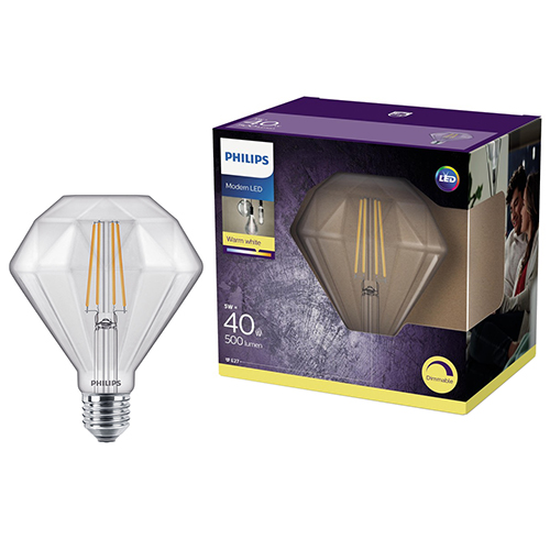 Лампа светодиодная декоративная диммируемая Philips LEDClassic 40W Diamond E27 2700K CL D (5 Вт, 500 лм, прозрачная колба)
