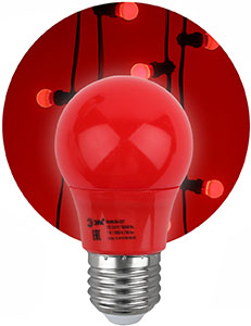 Лампа светодиодная декоративная ERARL50-E27 "Эра" (Е27, А50, 3 Вт, 30 лм), красный