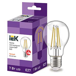Лампа светодиодная IEK LLF-A60-7-230-30-E27-CL (A60 стандарт, E27, 7 Вт, 840 лм), прозрачная, цвет свечения теплый белый