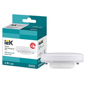 Лампа светодиодная IEK LLE-T80-6-230-40-GX53 (tablet, GX53, 6 Вт, 220 В, 540 лм), цвет свечения нейтральный белый