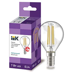 Лампа светодиодная IEK LLF-G45-7-230-40-E14-CL (G45 шар, E14, 7 Вт, 840 лм), прозрачная, цвет свечения нейтральный белый