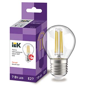 Лампа светодиодная IEK LLF-G45-7-230-30-E27-CL (G45 шар, E27, 7 Вт, 840 лм), прозрачная, цвет свечения теплый белый