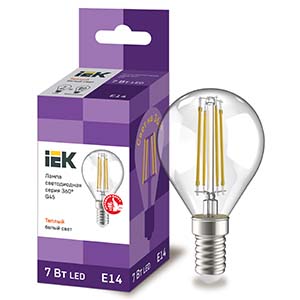Лампа светодиодная IEK LLF-G45-7-230-30-E14-CL (G45 шар, E14, 7 Вт, 840 лм), прозрачная, цвет свечения теплый белый