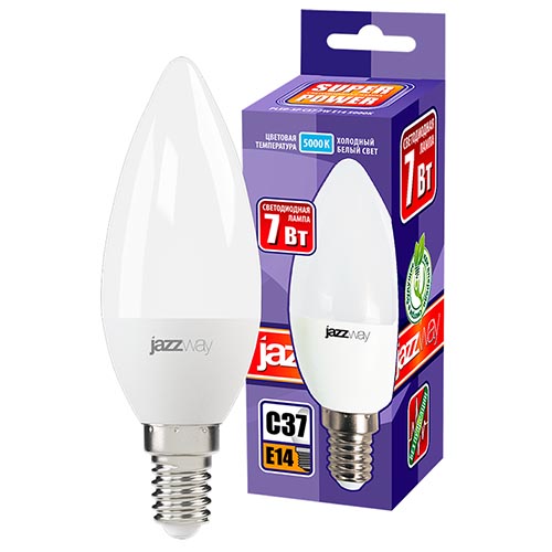 Лампа светодиодная Jazzway PLED-SP C37 7 Вт (свеча, Е14, 560 лм), цвет свечения холодный белый