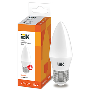 Лампа светодиодная IEK LLE-C35-9-230-30-E27 (C35 свеча, 9 Вт, E27, 810 лм), цвет свечения теплый белый