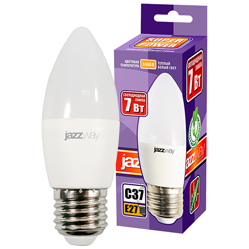 Лампа светодиодная Jazzway PLED-SP C37 7w E27 3000K (свеча, 560 лм)