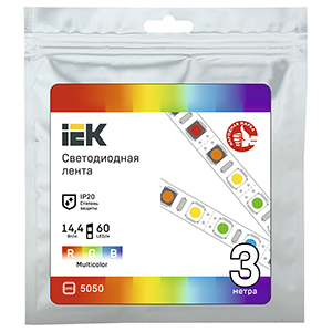 Лента светодиодная IEK LSR-5050RGB60-14,4-IP20-12В PRO (SMD 5050, 12 В, 14,4 Вт/м, 60 led/м, IP20), цвет свечения мультиколор