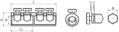 Соединитель болтовой с рядным расположением болтов предназначен для соединения любого типа кабельных жил: алюминиевых и медных, круглых и секторных, моножильных и многопроволочных.