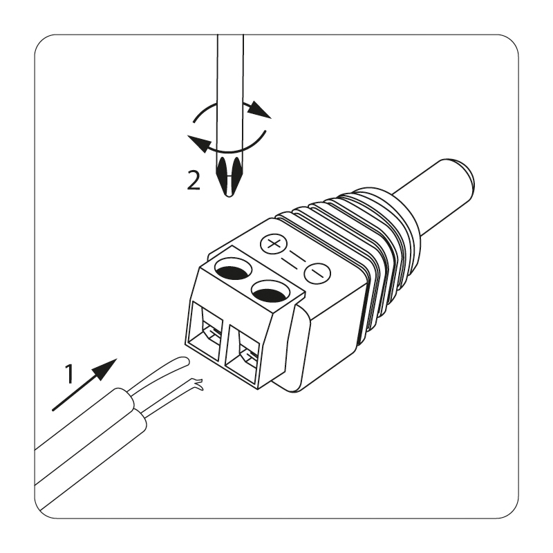 Двухконтактный штекер монтируется на кабель с помощью винтовых зажимов.