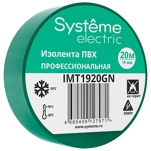 Изолента ПВХ 19 мм х 20 м Systeme Electric IMT1920GN, зеленый