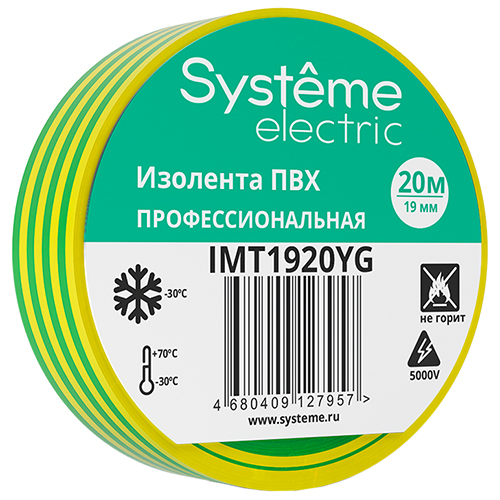 Изолента ПВХ 19 мм х 20 м Systeme Electric IMT1920YG, желто-зеленый