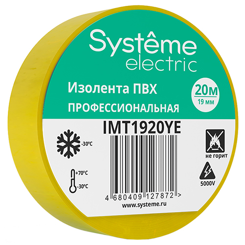 Изолента ПВХ 19 мм х 20 м Systeme Electric IMT1920YE, желтый