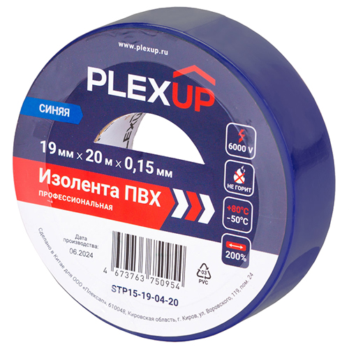 Изолента ПВХ 19 мм х 20 м PlexUp STP15-19-07-20, синий
