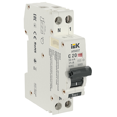 Выключатель автоматический дифференциального тока IEK B06S 1Р+NP C20 30мА тип АС Armat
