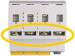 | Возможность присоединения к контактным зажимам соединительных шин со стороны подключения сети | PIN (штырь), Fork (вилка) |