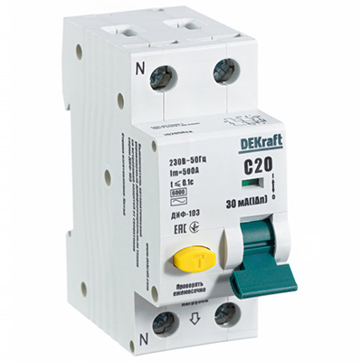 Автоматический выключатель дифференциального тока DEKraft ДИФ103-6кА-1N-20А-30-C (1Р+N, 20 А, характеристика C, 30 мА, 6 кА, тип АС)