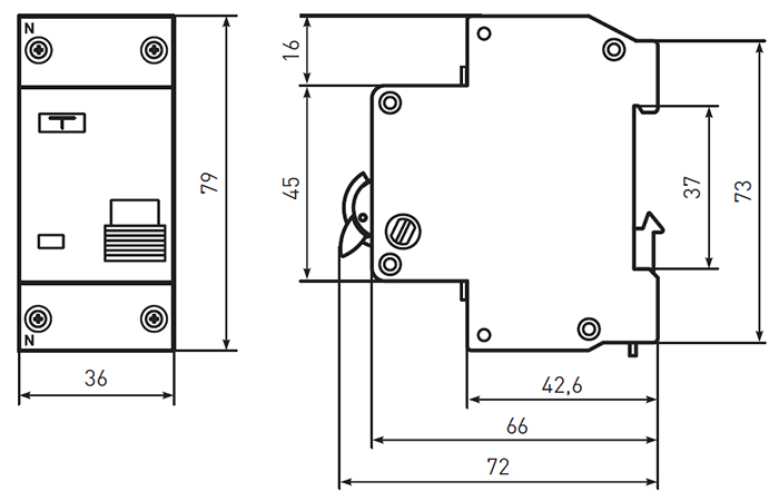 | Число полюсов | 1P+N |