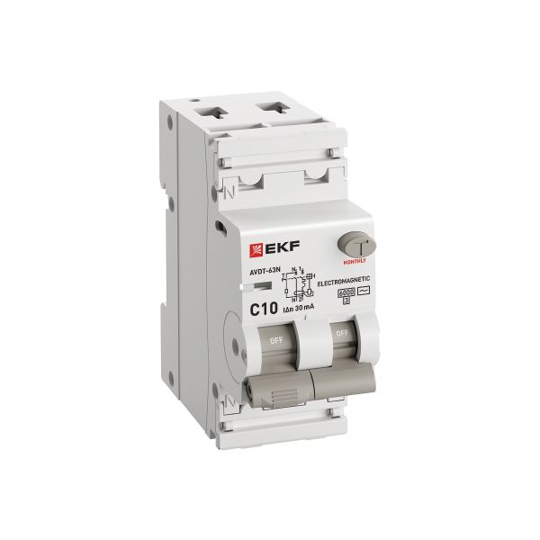 Автоматический выключатель дифференциального тока АВДТ-63N PROXIMA EKF – это аппарат, сочетающий функции автоматического выключателя с электромеханическим или электронным УЗО. При обнаружении автоматическим выключателем в защищаемом участке сети тока утечки (повреждения) на землю или сверхтока (тока перегрузки или короткого замыкания) происходит срабатывание устройства, приводящее к отключению защищаемой сети. Особая конструкция рычага обеспечивает информативность устройства, указывая на причину
