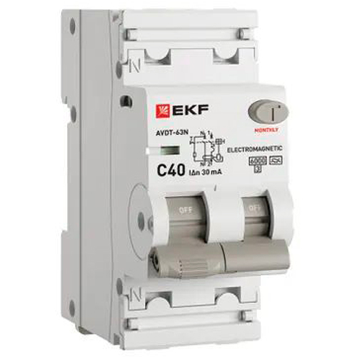 Автоматический выключатель дифференциального тока АВДТ-63N 1P+N 40А EKF PROxima (40 А, характеристика C, тип A электромеханический, 30 мА, 6 кА)