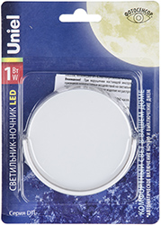 Ночник светодиодный "Круглый" DTL-316 Uniel (1 Вт, 220 В~), с датчиком освещенности, белый