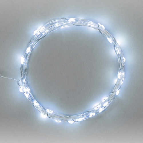 Гирлянда состоит из тонкого провода длиной 10 метров с расположенными на нем 100 белыми долговечными светодиодами.
