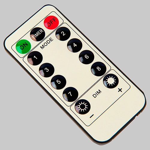 При помощи пульта ДУ можно регулировать яркость гирлянды, а также активировать функцию таймера, удерживая кнопку не менее 2 сек.