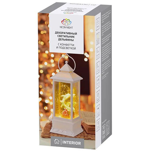 Светильник светодиодный декоративный Neon-Night 501-173 "Дельфины" (2 led, 3 х АА / USB), с конфетти, цвет свечения теплый белый