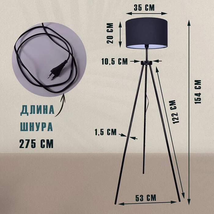 Торшер "Россвет" РС22822/1F (1 х 60 Вт, Е27), черный