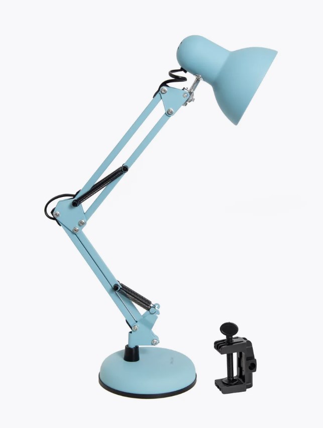 Настольный светильник (Е27, 60 Вт) с основанием и струбциной в комплекте. Материал: металл. Диаметр плафона 125 мм, диаметр основания: 155 мм.
