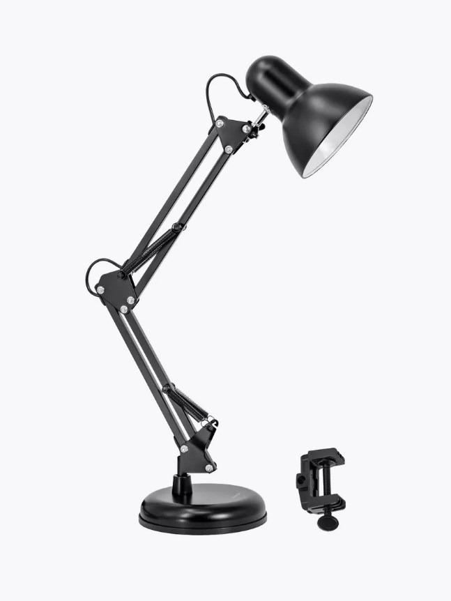 Настольный светильник (Е27, 60 Вт) с основанием и струбциной в комплекте. Материал: металл. Диаметр плафона 125 мм, диаметр основания: 155 мм.